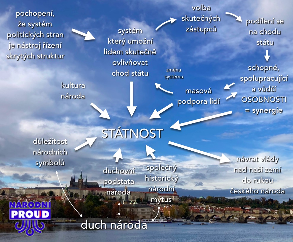 Pro státotvornou kulturu je potřebná SYNERGIE jak všech lidí, tak především vůdčích osobností. A k tomu je potřeba, aby byl národ naladěný „na stejnou vlnu“. Národní duch je tvořen především svou minulostí, současnou symbolikou, vnímáním národní sounáležitosti a představ budoucnosti.